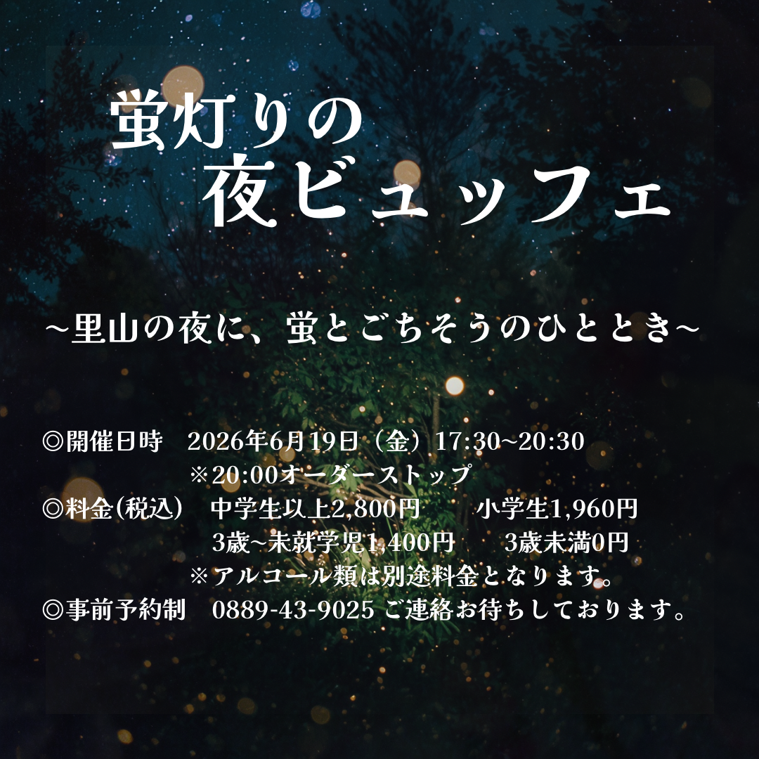 今年初めて開催する【 夜ビュッフェ×蛍 】